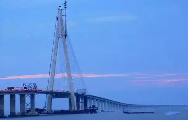 杭州湾跨海大桥建成通车 2007年6月26日,世界上最长的跨海大桥杭州湾跨海大桥全线贯通。这座全长36公里大桥为双向六车道高速公路,时速可达100公里,使用寿命100年以上,缩短的宁波至上海间的陆路距离120公里,促进了杭州湾经济的发展。