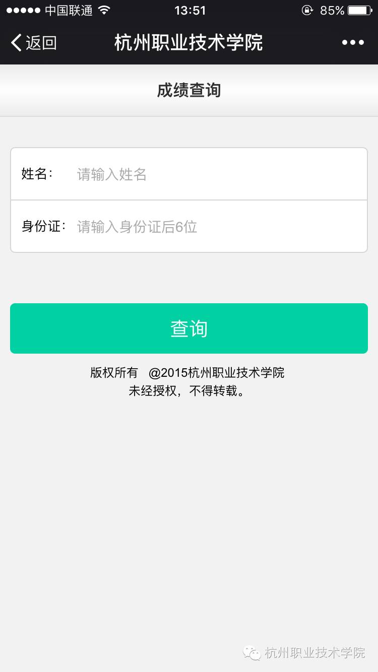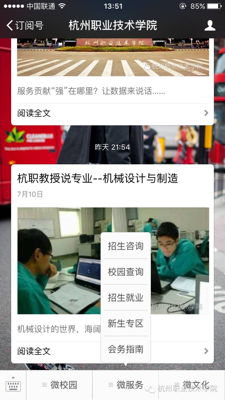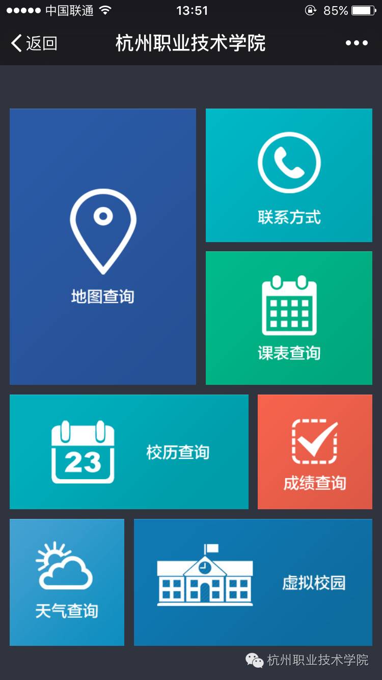 打开杭州职业技术学院官方微信,点击位于底部的微服务,再点击校园查询。