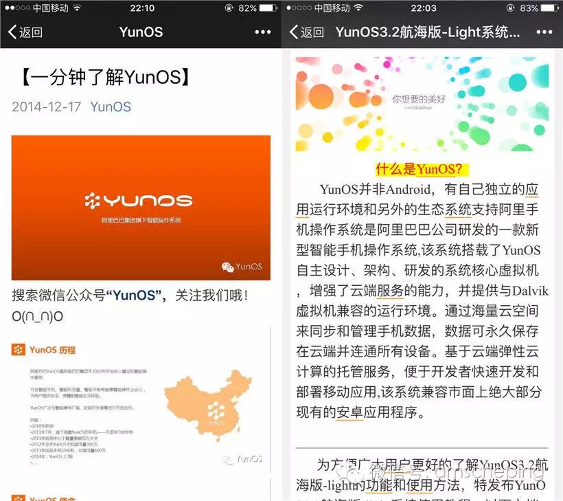 在参加发布会之前,我先关注了“YunOS”公众号,研究了一番发现所谓“一分钟了解YunOS”对我并没有什么帮助——字实在太小了,而且2014年12月发布的内容,阅读量只有1731。其它,只大约知道这个系统也要上身到汽车上。