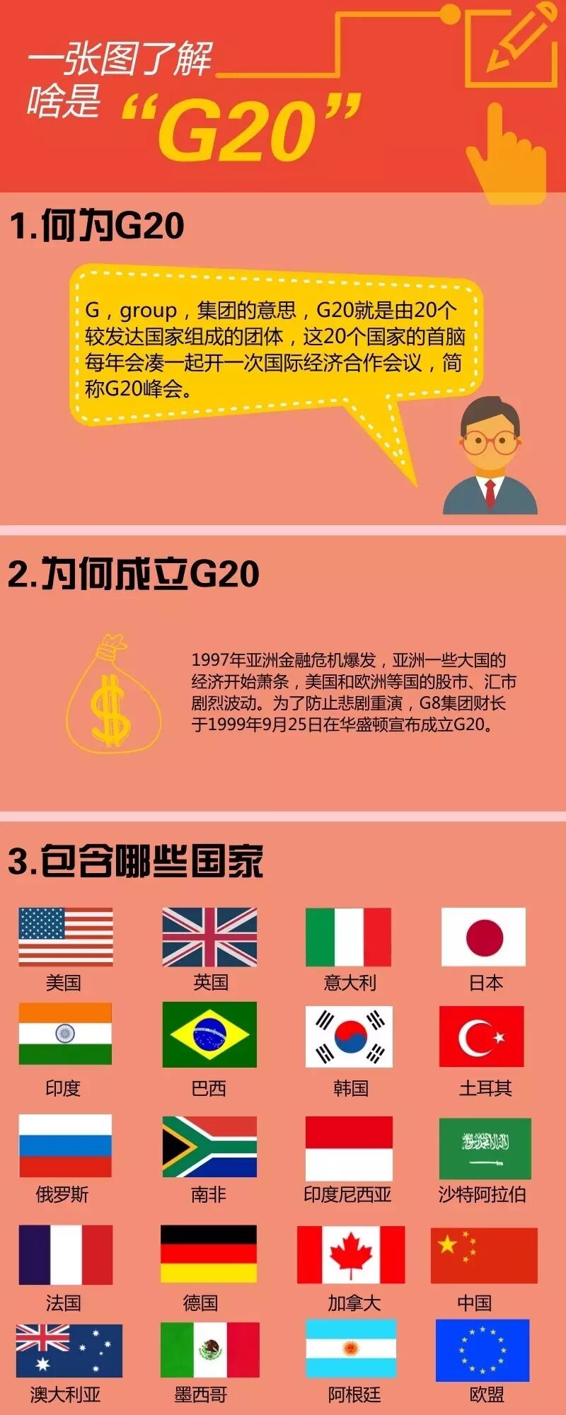 在关注议题之前,问你几个问题,你知道 G20 是由哪 20 个国家构成的吗?为什么会有这样一个组织?G20峰会都在讨论哪些问题……关于这些基础知识,快来戳图补课吧!