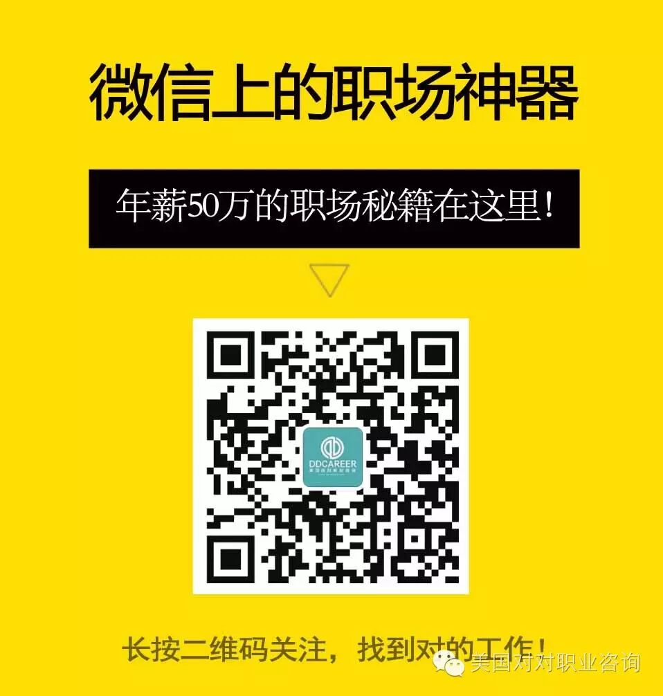 美国对对职业咨询,帮你在对的时间,找到对的工作 (微信ID: nycadvisor 或 info@ddcareer. com) ! Stay tuned, stay engaged and stay positive!