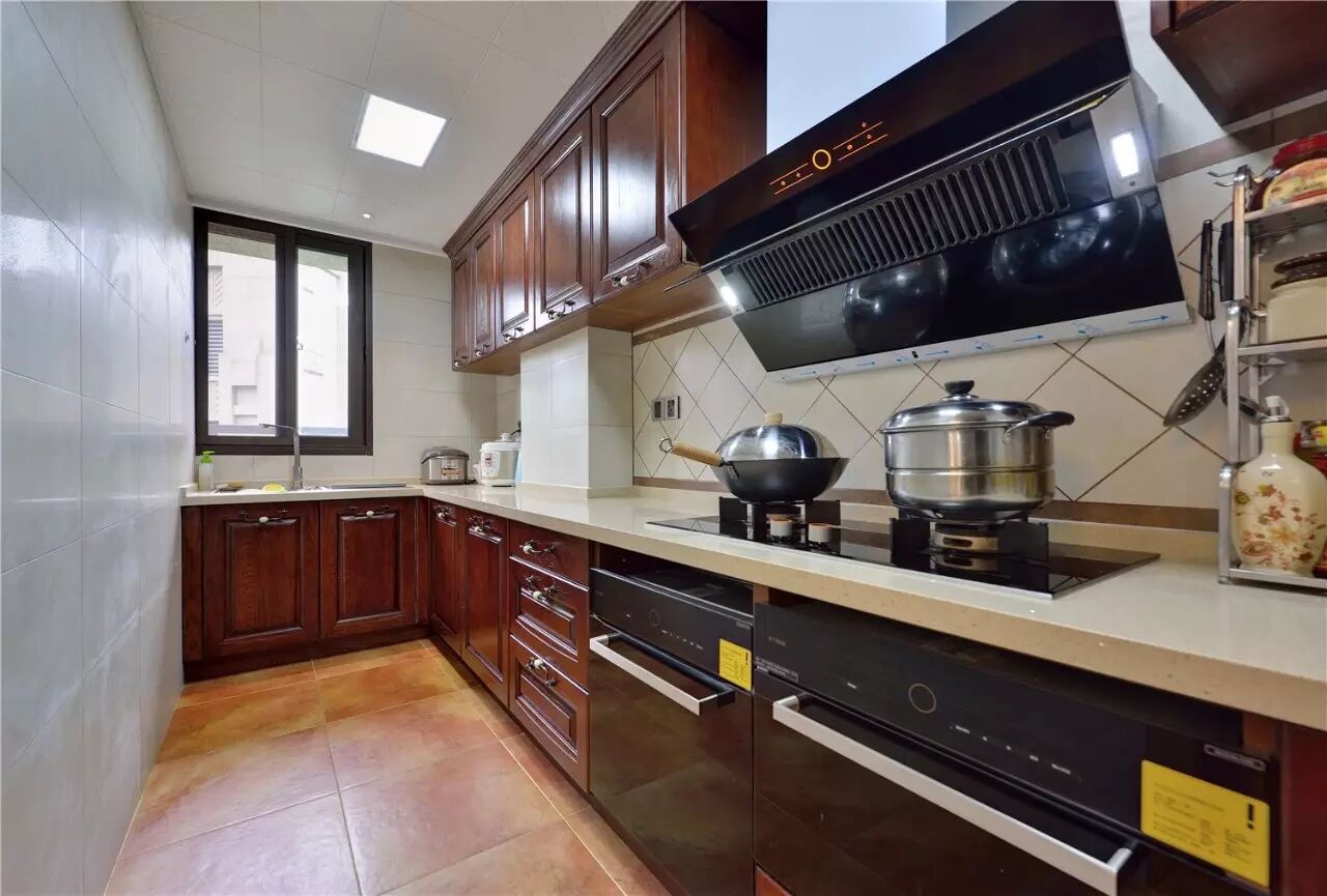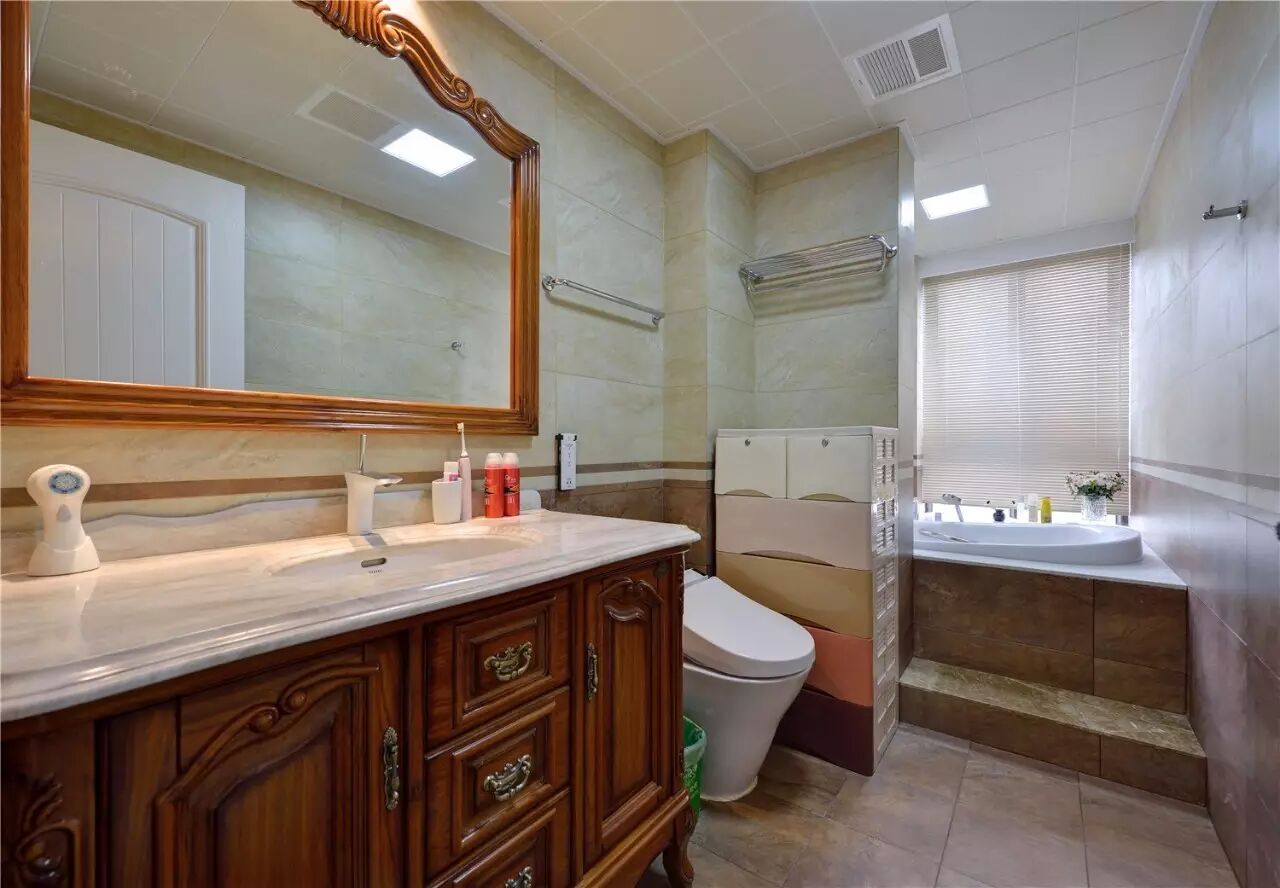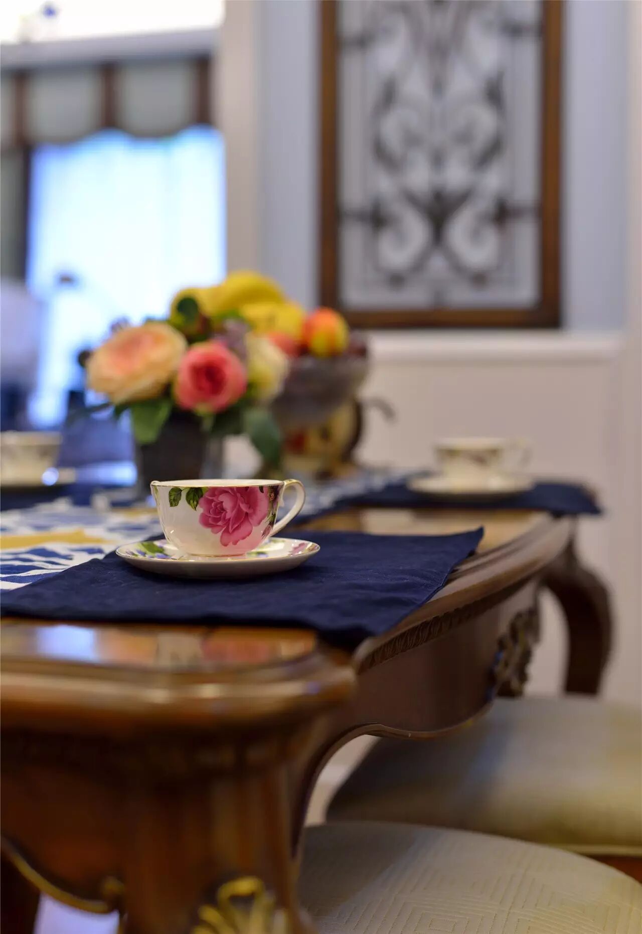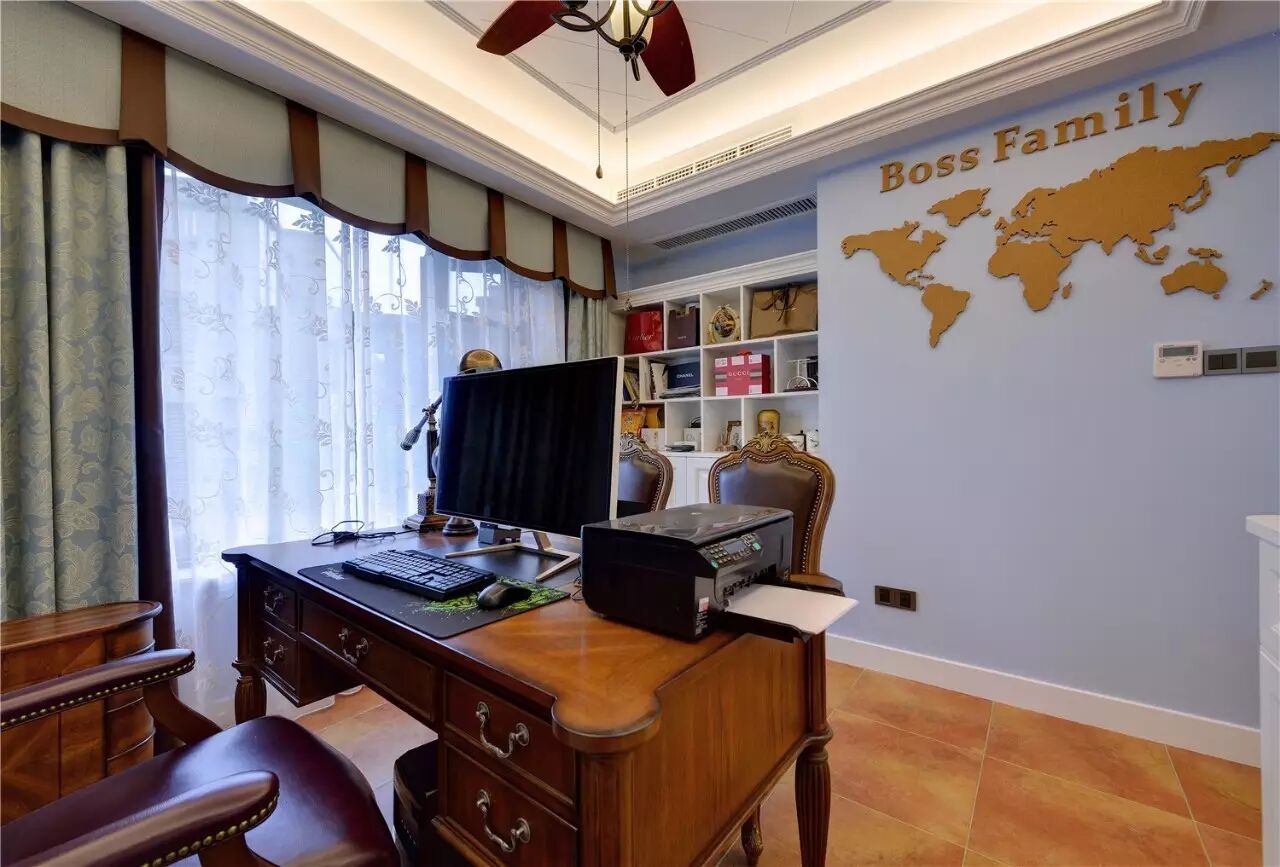 本案是以典型美式风格为主调的一个户型。客厅以浅蓝色,黄色,白色为基调,采用对称处理手法造型,深色家具的运用增添空间厚重感,与蓝色墙面形成视觉对比,在结构改造上,1 、让书房与客餐厅相连,3个空间互通使公共活动区域扩大,户型比原结构在视觉上增大很多;2、完善了附属空间,如:衣帽间的设置和玄关位置的划分,让空间动线更合理,生活便捷度增强。