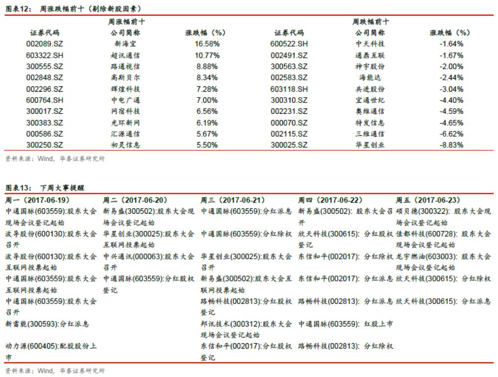 本周“兴际大海”组合收益1.94%,申万通信涨1.39%,沪深300跌1.19%:中兴通讯作为国内龙头设备商,受益运营商集采及5G落地加速;中际装备收购苏州旭创,是100G高端光模块稀缺标的,受益数通光模块市场的高景气度;大唐电信是国家集成芯片的第一梯队,与高通合作发力低端芯片;海能达专网龙头,PDT、TETRA、DMR三条数字产品线在国内外市场同步发力,建设国家专用应急通信网。目前市场短期风险偏好上升,开始关注二线蓝筹股投资机会,建议大家关注星网锐捷、烽火通信。