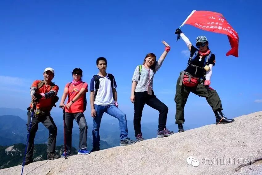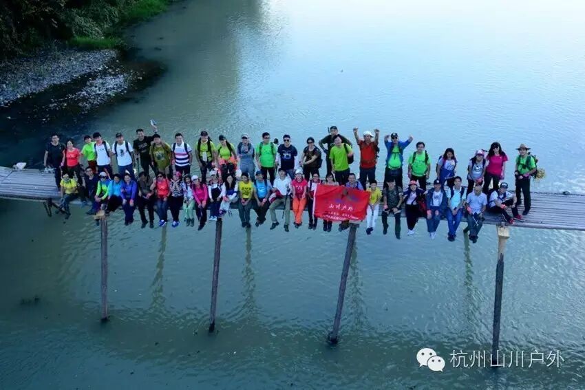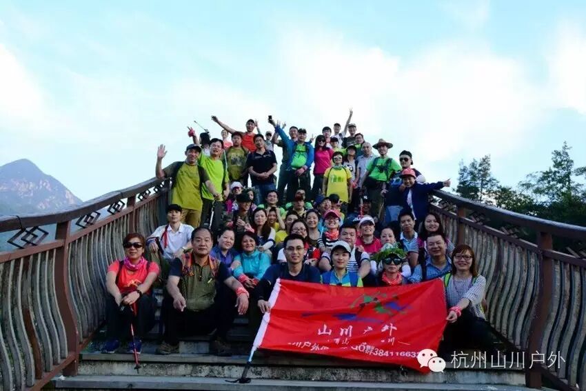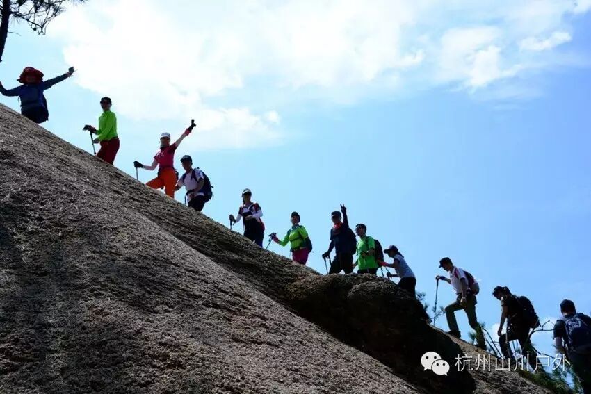 6:30钟出发 到绩溪龙川 下车简单热身后开始从坑口到浒里村要过登源河,河上架着很有味道的木桥——浒川官桥,有点年头了。从浒里村边田野小路一直往东南方向前进约半小时便开始进山。先要从海拔210米一直翻上龙须山主峰前的一座约500米的山峰,基本是在树林里穿行上升,到这里需2小时。到达这座山峰的山脊视野会豁然开朗,主峰龙峰、次峰白沙峰的雄资跃然出现在眼前,眼前的景与你所想象得反差太大,主峰和次峰的悬崖绝壁会让你感觉是到了天柱山或是九子岩。从这里再下行到400米的溪谷才真正到达了龙峰的山脚下,再开始一路上行,约2.5小时到达上石屋,上石屋是一块巨石下的一块空地。从上石屋上行约40分钟可到870米处的主峰哑口,这里往左边的小山脊是一个绝好的观景台,可清楚的看到白沙峰的绵绵山脊。向右上行便是冲顶,顶峰上树木繁茂无法观景。 白沙峰——坑口(西北山路):翻过哑口下行50米再上行80米到达900米的白沙峰顶,从此折向西北便顺着山脊一路绵延下山,坡度缓、路线长,约3个小时才能下到山脚,快到山脚时会经过二天门、一天门等景点,往下全是石板路。一般游人从西北山路上山只会到二天门便不会再上行。从山脚沿着小河步行40分钟到坑口,后返回萧山。