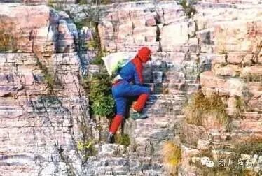 河南景区环卫工扮成蜘蛛侠悬崖峭壁上捡垃圾。
