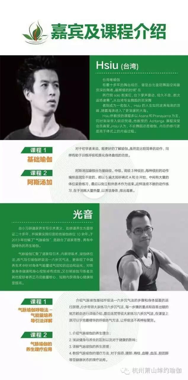 清晨,杭城在慢慢地从静谧中苏醒过来。平日匆匆忙忙上班的人们或许还在被窝里睡着懒觉。而西湖边的伽人们,早已开始当天的早课,座无虚席,安静而又有序。在桂花的香气里,在晨光中,开始冥想,开始习练。风和日暄,瑜伽老师们为我们倾情呈现瑜伽的不同面向,分享他们多年来对瑜伽的理解和感悟。