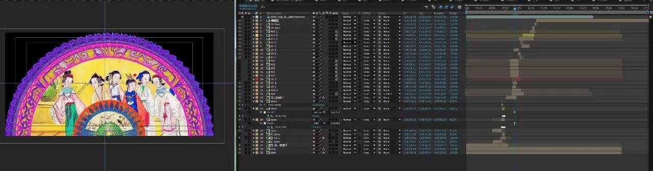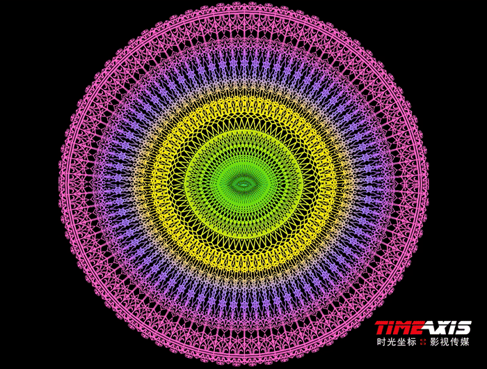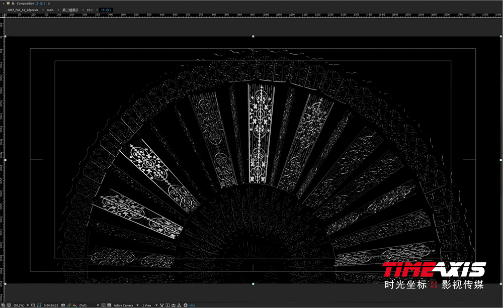 制作团队先根据音乐节奏,将扇子的平面设计稿转换成 2D Previs(数字预演);#看看就好,因为我解释不了这么专业的#