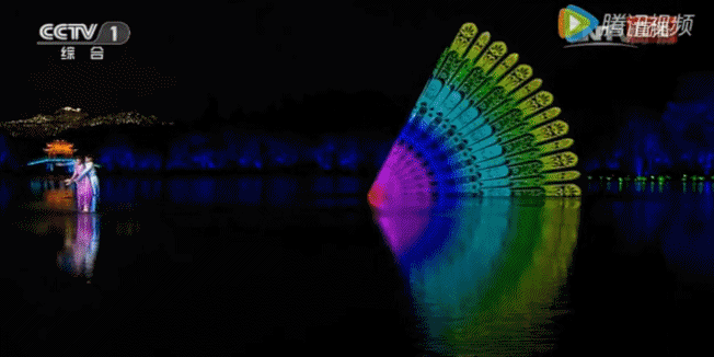 在夜西湖上“开屏”的巨型彩扇,是朋友圈出镜率最高的图片。