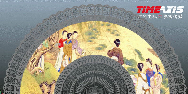 再将主创的创意,通过 2D 的形式动态化;同时另一组制作人员搭建扇子的 3D 模型。