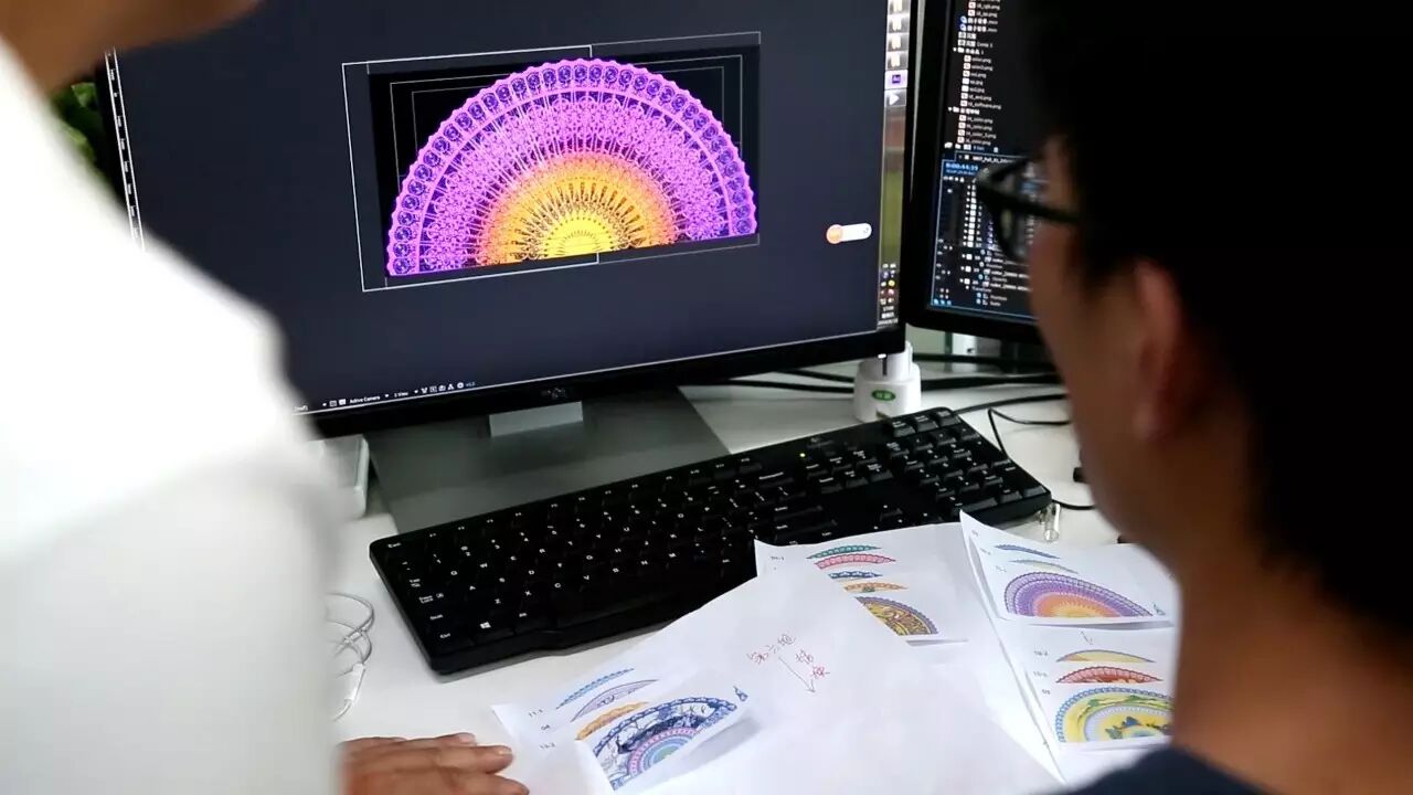前期,由北京盛世云图公司配合主创团队试错,调整方案。从 1000 把扇子的设计中,精缩到 40 把左右的体量 ▼▼▼