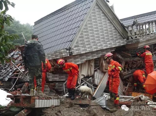 同时,浙江省公安消防总队立即启动山体滑坡应急预案,共调派丽水、杭州、温州、衢州、金华、台州等6个消防支队60辆车、286人、5条搜救犬赶赴现场增援。