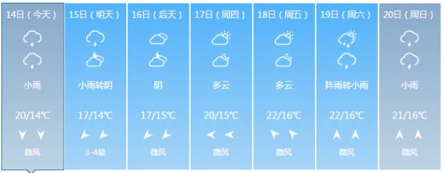 据浙江省气象台分析,预计未来几天我省阴雨天气又将有所增多,今天下午到明天上午,浙中南地区降水较明显;16-18日全省阴天为主有时有小雨,19日夜里到20日全省还有一次降雨过程。