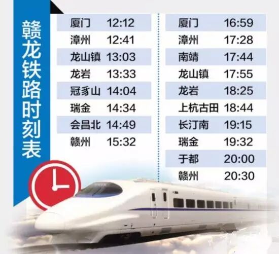 从列车时刻表中可以看到,乘坐瑞金至厦门的动车,只要2.5小时啦!
