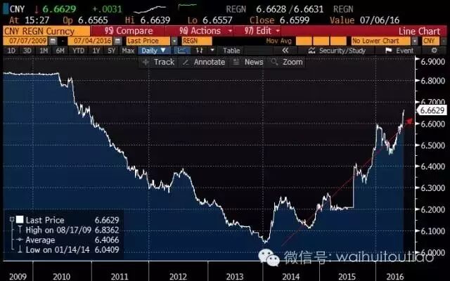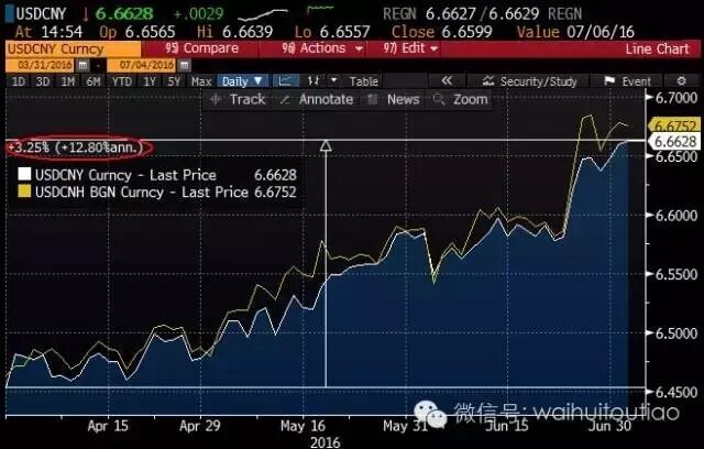 年初至今,兑一篮子货币汇率已经贬值了5.9%,年化13%。CFETS汇率指数跌至94.88,创去年12月指数创立以来最低。↓↓↓ 最近三个月,在岸兑,以及离岸兑也贬值了3.25%,年化12.8%。↓↓↓ 实际上,自2014年初,就开启了贬值大趋势。若继续兑一篮子货币贬值,或引发长期单边贬值预期。↓↓↓ 瑞银经济学家Ning Zhang在报告中表示,随着英国公投后贬值压力重现,瑞银下调了汇率预测最低至7.2。Ning Zhang称,在英国投票脱离欧盟后,中国的出口需求将受到欧洲增长放缓的影响。 ——1—— 官媒首提20%-40%贬值幅度 ,与历史上其他曾经历过由“盯住汇率”制退出的国家过程一样,市场各方未来也必将经历一段逐步适应波动幅度加大的时期。 文章称,2008年金融危机后,美、日、英、欧等主要经济体的央行均启动了史无前例的非常规性货币政策。纵观发达国家国际主要货币的汇率史,短期内出现20%甚至40%汇率波动的极端情形也并非罕见。 相比之下,的表现才是负责任的国际货币。如以有效名义汇率考量,过去8年间大国货币中只有没有相对任何一个主要货币出现剧烈的贬值,相对一篮子货币的有效汇率水平也基本保持了稳定。 汇率客观上存在贬值压力,贬值也能够给中国出口带来积极作用,另外缓慢贬值的预期会使外汇储备持续流出。结合官媒文章来看,国际主要货币短期内都出现过20%甚至40%的汇率波动,且过去8年间大国货币中也只有没有出现剧烈贬值。未来会出现剧烈贬值吗?会选择一次性贬值而非缓慢贬值这种更大胆的行动吗?目前,仍然不敢肯定。 但是,在国内资产泡沫和汇率之中,,而弃汇保资产是危害相对小的选项。 ——2—— 贬值,过犹不及? 德国商业银行周浩称,不看不知道,一看也真的吓了一跳,在过去半年兑一篮子货币的贬值幅度达到了5.8%。半年贬值5.8%,简单的数学计算会告诉市场,在全年会兑一篮子货币贬值超过10%。 这个时候的问题很简单直接,到底是为了贬值而贬值,还是为了创造波动而贬值? 换句话说,如果在这样的时刻,能够保持强势,那么市场就会形成双向波动的观点,而如果一路续贬,那么市场就会认为会出现2005-2015年的单边走势,当然,现在的单边走势是单边贬值。 所以市场会问一个问题,指数是否会存在一个区间,而不是永远向下? 坦白说,这个问题到目前为止没人可以回答。但如果存在区间的话,目前的指数可能已经在底部区域。 我们可以这样去理解。在过去的很多年内,新加坡元的波动区间是+/-2%。按照波动区间和通胀目标的逻辑,篮子的波动区间应该设定在+/-3%左右。 区间之外的另一个决定因素是斜率,斜率看起来是一个很抽象的概念,但理解起来也不难,如果说政策目标是每年让货币升值2%,那么就用2%除以365,就可以得出大致的路径,而这个路径上的每一个点可以被认为是“中点”,以“中点”为基准,上下设定交易波动区间,就可以获取一个大致的交易空间。 如果将这些概念引入,我们就可以发现,假设交易波动区间为+/-3%,那么目前的斜率指向至少是超过5%的贬值。 简单的数学计算显示,每年5%的贬值,半年就是2.5%,加上3%的下方区间,上半年至多可以贬值5.5%——而现在已经对一篮子货币贬值了5.8%。 所以,所有的问题回到了原点:如果指数的波动没有区间,那么以上的所有讨论都是没有意义的,市场也会据此形成将长期贬值的预期。如果指数的波动有区间,目前的波动幅度应该已经接近底部区域——一个超过一定贬值幅度(比如说每年贬值10%)的货币,市场会将其贬值归类为“结构性贬值”。 ——3—— 新概念:成避险资产? 中国财政部上周三在香港成功发行五个期限、共计140亿元国债,其中,三年期70亿元国债发行利率2.9%低于市场平均预期,并获2.48倍超额认购。 交易人士认为,这凸显了近日离岸流动性泛滥、资产匮乏现状,巨量发行受市场热捧,亦彰显资产对国际投资者吸引力有所增强。 兴业证券王涵称,在本轮英国退欧问题带来的全球资本市场冲击中,人民币资产受到的负面冲击明显小于其他国家,是资金的“避风港”。 也要成为避险资产了?先看看日元为何成为避险资产吧: 首先,日元作为避险资产,是和全球货币套息(Carry Trade)的现象密切相关的。由于日元长期是低息货币,国际投资者往往融入日元、购买利息收益较高的资产,如果相对汇率在套息的这段时间里是稳定的,那么投资者的收益就是高息资产汇报与日元借贷成本之差。然而,当风险爆发时,投资者从高息资产中撤出,并集中偿还日元,这就导致了日元需求在短时间内上升,日元汇率上升。 第二,日元作为避险资产,是因为日元突发性贬值的可能确实相对较小。1)日本不仅官方拥有世界第二大规模的美元储备,民间也拥有大量美元债权,雄厚的储备和债权意味着做空日元的难度极大;2)虽然日本国内债务繁重,但外债规模极小,因而日本政府一直享有很高信用评级,因风险导致对外违约的概率较小;3)日本国内货币政策长期在零利率上下,货币政策缺乏宽松空间导致日元因降息而突然下跌的可能性相对较小;4)风险爆发后,日本投资者出于母国偏好,会倾向于撤资回到境内,这也在短期支撑了日元表现。 第三,日元作为避险资产,是因为其流动性较好。日元早在上世纪90年代完成国际化,作为世界主要货币,日元不仅拥有仅次于美元和欧元的资产规模,日元资金在跨境流动方面也享有极高的自由。日元较好的流动