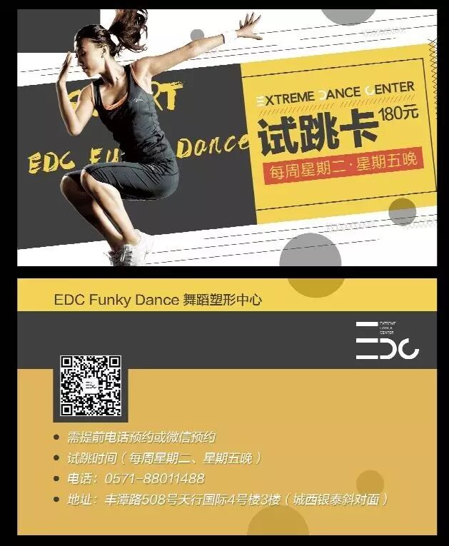 2、到场福利:凡是到场校友均获得一张 EDC 舞蹈塑形中心价值 180 元的试跳卡一张,