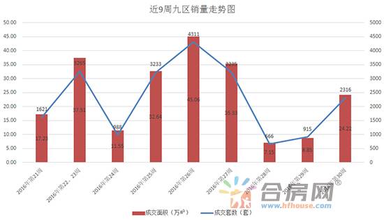 本周具体销售套数排名为:新站区以814套的销售套数排名全市九区销售量的榜首。排名第二位的是庐阳区,其销售量为563套。接下来依次为高新区280套、包河区245套、滨湖区136套、经开区106套、蜀山区81套、瑶海区4套、政务区2套。