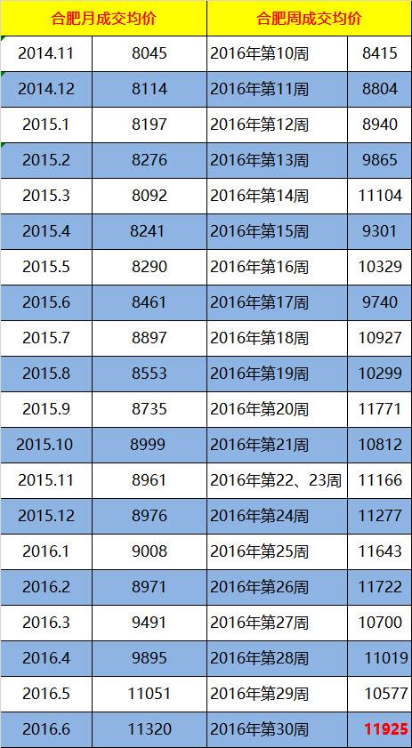 合肥房价已经连续15周破万,第30周更是达到了11925元/㎡,即将迈向1.2万。
