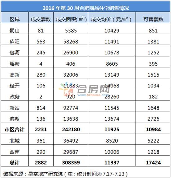 7.17-7.23合肥市区内的住宅成交均价约11925元/㎡。较上周(7.10-7.16)的10577元/㎡单周均价上涨了1348元/㎡,涨幅为12.74%。