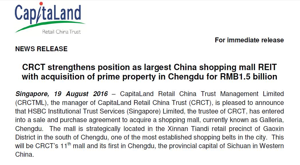 说起来,人类已经阻挡不了凯德在中国大陆建设的步伐了。官方数据,自1994年入华以来,在中国48个城市拥有超过160个项目。160个项目,真心不少,问题是这么多个项目,凯德依然玩得转,这就厉害了。至少在成都,凯德商用的运营能力是毋庸置疑的。而就在不久之前 ,凯德又花了大价钱(15亿人民币)的拿下了新南天地的凯丹广场,和自家项目凯德天府也就一街(区)之隔,独霸城南的节奏。