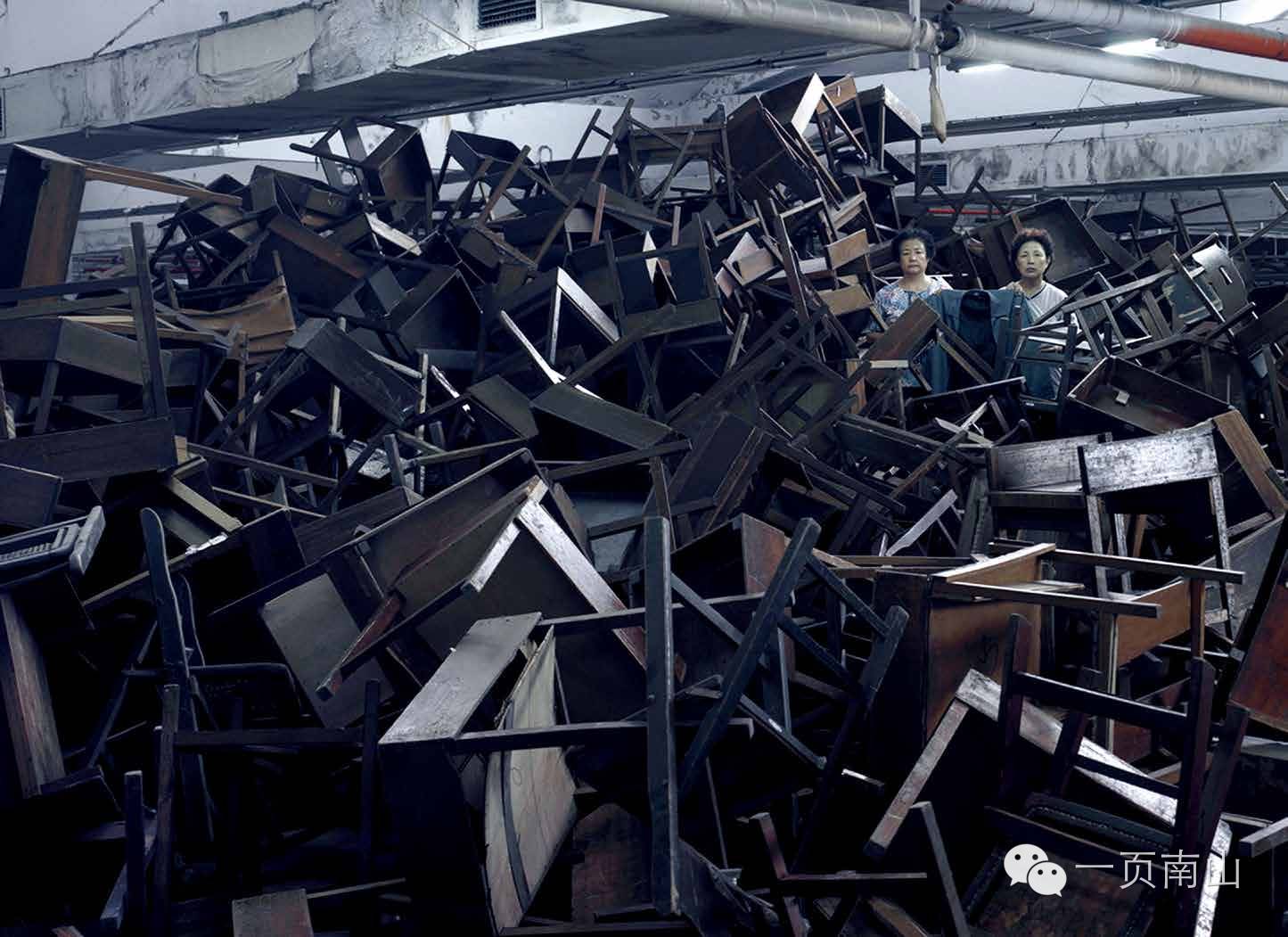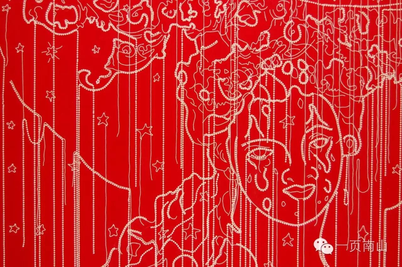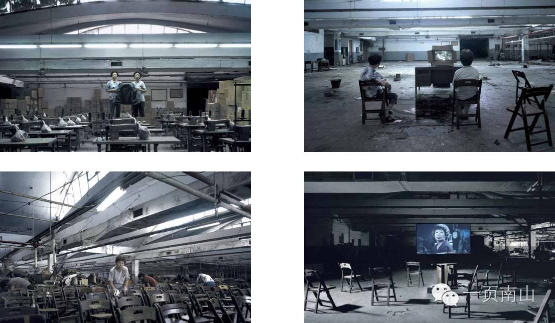 另一批艺术作品指向社会现实与日常生活,中国台湾艺术家陈界仁影像作品 《加工厂 》通过请制衣厂女工重回已经荒废七年的车间工作,用黑白宣传片的形式记录下当年 “停滞” 的残余物和今天 “流动” 的劳工,反映了中国台湾工业外移后失业劳工面对的残酷处境; 将织机做一次新的编织,是艺术家许江和袁柳军的新作《山水离歌》 ,曾经的母体—— 袜机,被它的产物袜子像茧一般地包裹,艺术家想表达的不仅仅是对浙江诸暨大唐镇早期产业的凭吊,而是某种被这飞速变迁所塑造、并依然日复一日被塑造着的现代物化的感性经验,老织机被软化为一种梦,一种产业乡土的复杂交织着的乡愁,并向外传递着一种在我们生活中不断发生着的诗化的转型,这是现代织业的离歌, 这是真实的工业山水。 英国艺术家詹尼斯 · 杰弗里斯以一组数字化技术呈现的照片,展示了海宁印染企业机器运转背后的纺织工人鲜为人知的辛劳工作;白俄罗斯艺术家维克托·阿斯留克用镜头记录东欧小镇冬日人们充满律动和温暖的劳作; 美国艺术家塔里·温伯格则用刺绣在绸纱上的红线暗喻流水线上的女工身体,揭示从这些女工身体中所体验到的社会变革以及肉身与社会、、经济、生态的关联。几位艺术家用不同的手段和视角记录了东西方纺织制造业背后的故事。在专项文献单元“绣画掇英”中,策划者向观众展示了中国传统文化中卓著的绣画艺术,但同时也提出了今日的苏州绣画—— 刺绣艺术之乡的镇湖,在数字图像时代的商品化浪潮中面临挑战和变革。从这些作品中我们可以看到,作为社会生产重要的纺织业和第一现场,它折射出的是众多向度的社会问题。