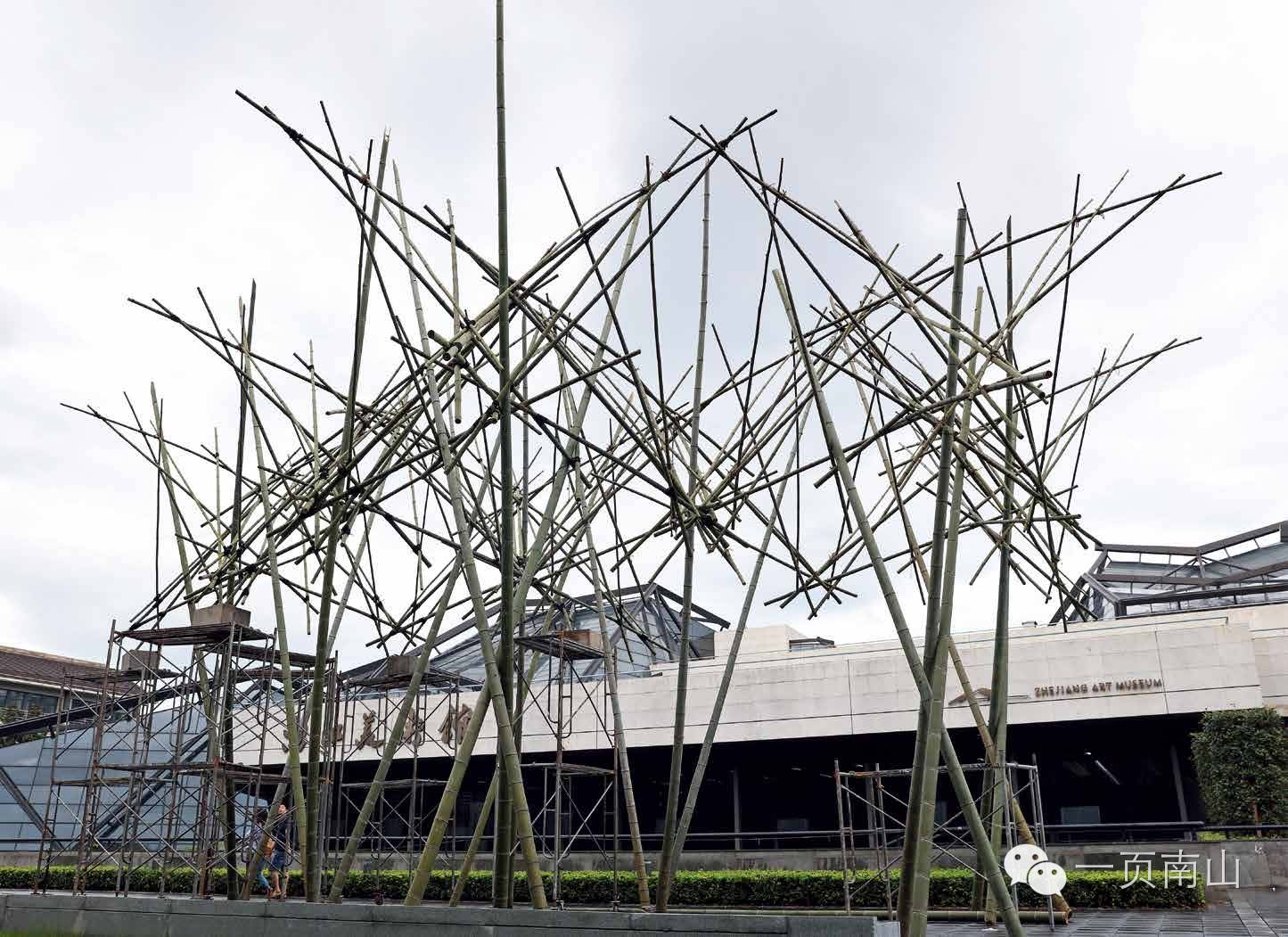 既然是对生生不息的存在的叩问,艺术作品就势必要回返生活本源。本届三年展中,艺术家们从多个角度来进行这种回返。他们或是回返生态,如中国艺术家梁绍基的创作始终以蚕为主题, 蚕茧、 蚕虫、 蚕丝,通过生物实验来传达生命的周转和自然的神秘,以此来阐述艺术家关于时间、呼吸、运动、宇宙、精神、永恒的感悟;中国建筑师陈浩如用来自安吉的毛竹建构起一座乡土生态丛林,它以编织作为结构和形式的语言,从二维进入三维进而营造出一处场所,汇集成人群活动的场景; 美籍华裔艺术家刘北立从一个个蚕茧中拉出的蚕丝变幻成沐浴在阳光下流动不一的云朵,并运用蓝晒法用自然光赋予云朵深浅不一的天然色调,回应传说中“女娲补天”的壮举; 意大利艺术家克劳迪娅·罗西此次以在地创作艺术家的身份,通过工作坊的传递与交流,将中国文化中的神话动物以及现实中的多种动物特色与其生活中所接触到的动物世界相关联,创造出了一组造型生动诡异的动物群,以表达庞大世界语序中生物的相互适应性,并取名《邻近》 。