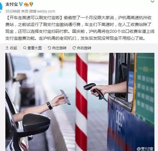 国庆前,沪杭甬将在200个出口收费车道上线支付宝缴费功能。走沪杭甬的司机朋友们,再也不会遇到没带现金或者现金不够的尴尬情况啦!