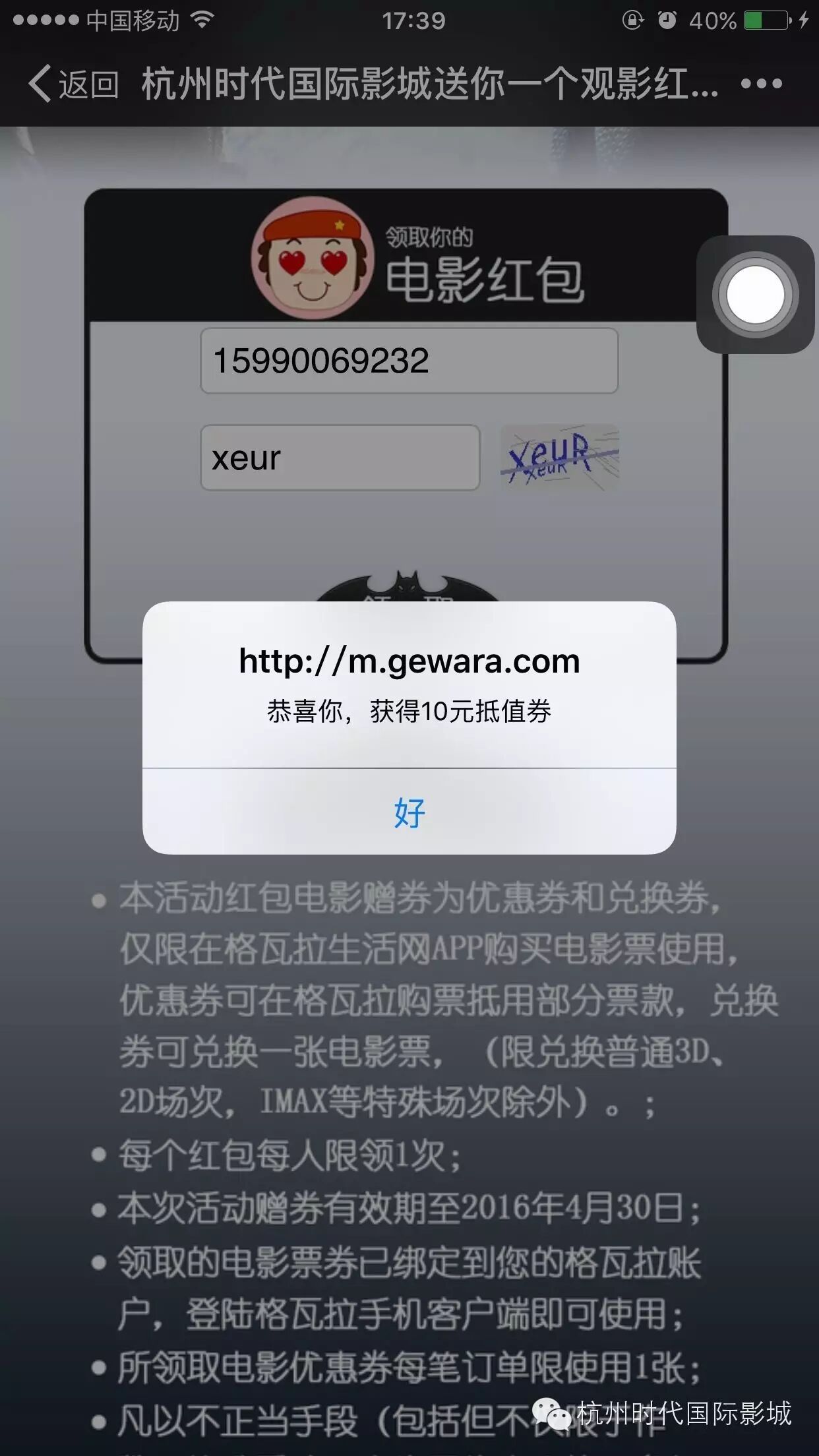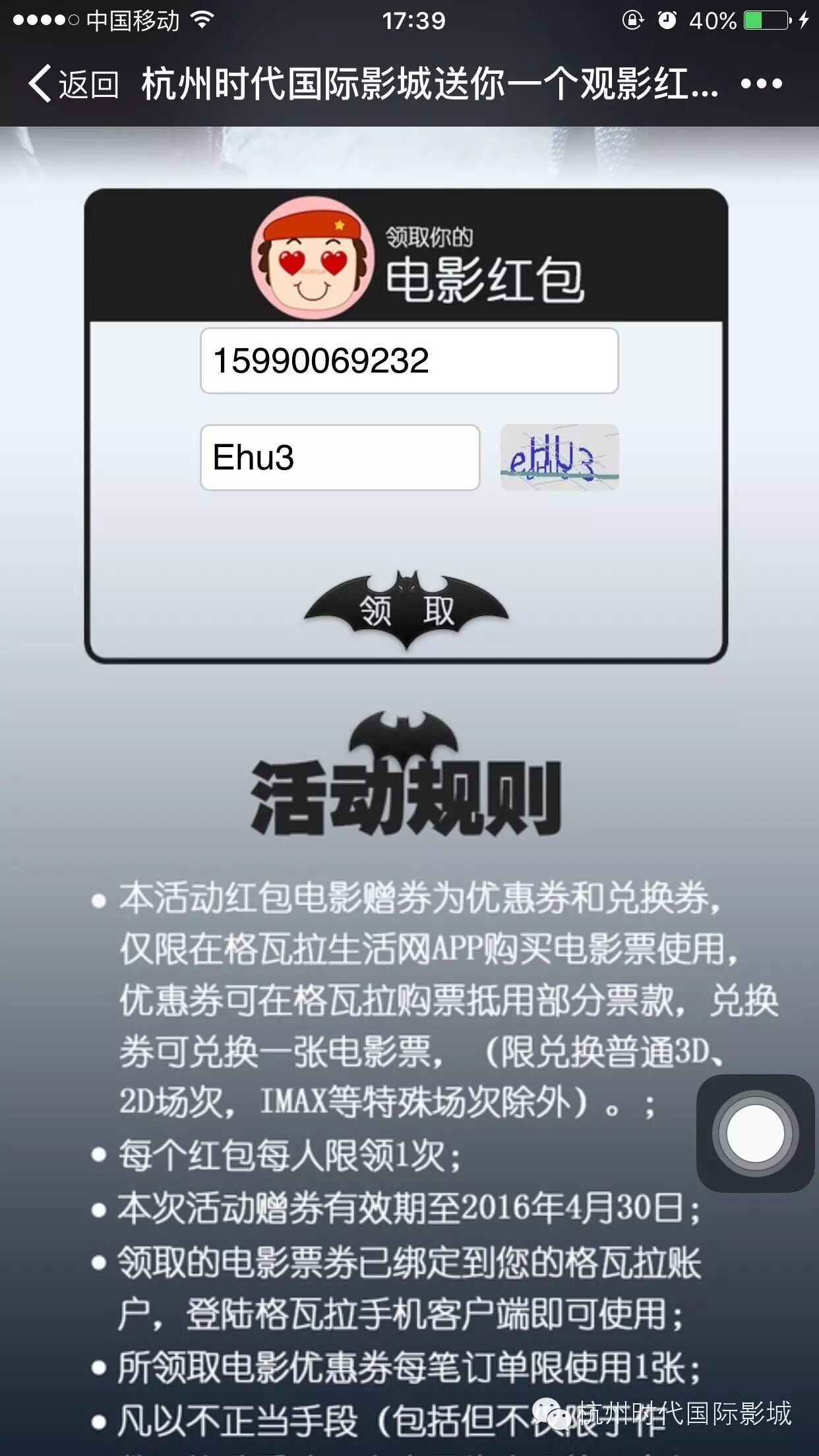 下载一个(格瓦拉@电影)APP、选择杭州时代国际影城进行购票
