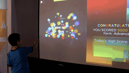 这里有酷炫的大屏幕互动游戏,考验你的短时间记忆力。游戏画面有点可爱,勾起单机小游戏的年代回忆,现在居然不用鼠标手柄,挥挥手就能玩了。