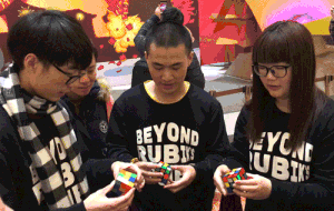 全程助阵《超越魔方》中国巡展的最强大脑魔方冠军王鹰豪,也来到现场进行了速拧表演。