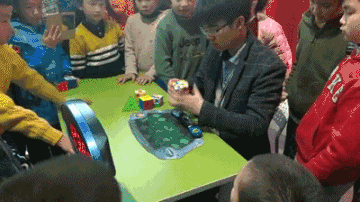 当晚,在环球港最热闹的太阳厅,我们身怀绝技的《超越魔方》导览老师,也进行了三阶、四阶、异形魔方速拧表演,吸引了众多围观人群。