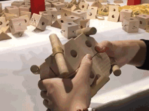 通过转动一旁的小魔方手柄你就可以轻松操控这个重达两吨的世界上最大的魔方。