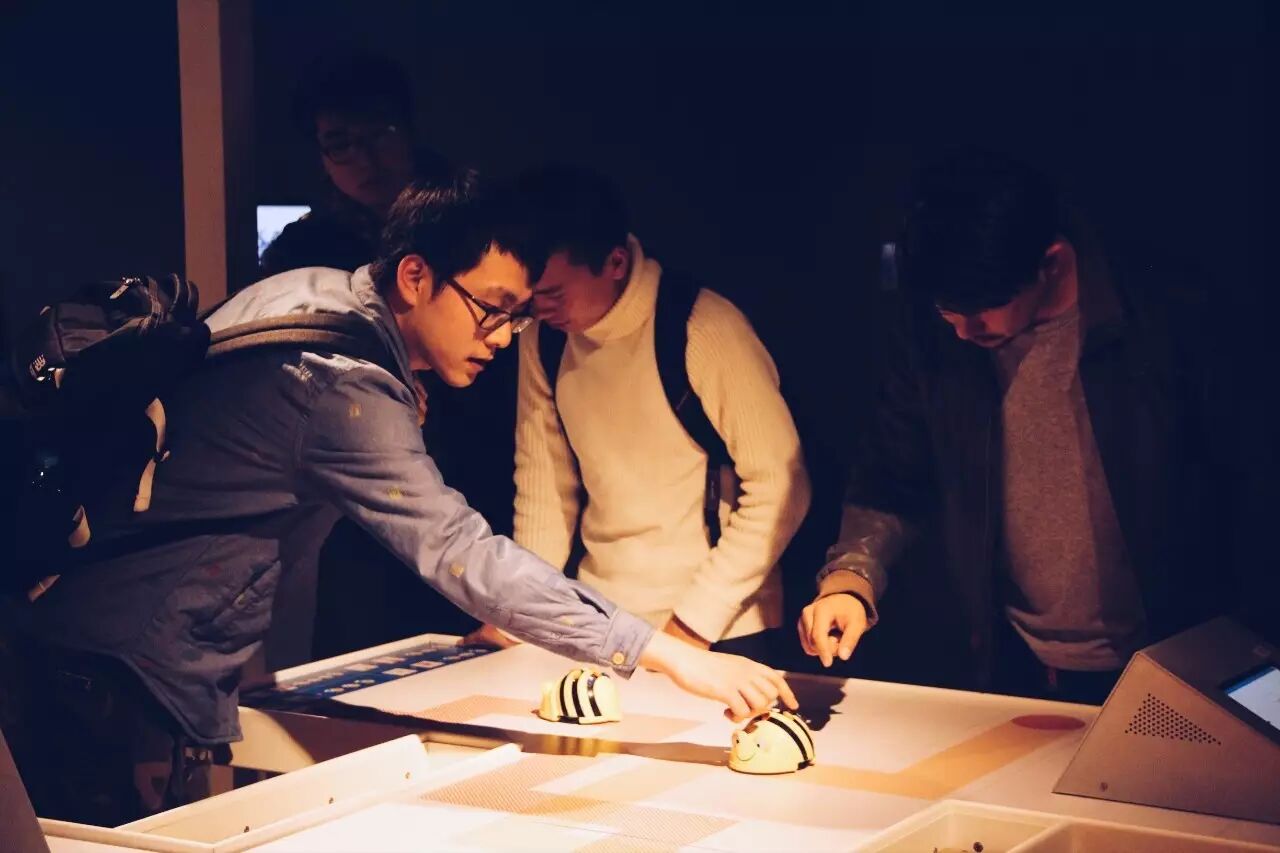 先拿积木,自己设计迷宫和路障。然后,通过蜜蜂机器人身上的各种按钮,控制它移动和转向,最终到达目的地。看似简单的任务中,隐藏着很多机器人程序控制的基础编程。