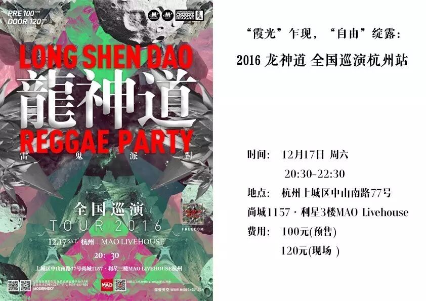 今年4月,龙神道发布了签约摩登天空以来的首张专辑《自由》,时隔半年,横跨11、12两月的龙神道全国巡演宣布正式开启,近二十个城市的乐迷将有机会聆听到现场版的《自由》。同时,这次巡演,也是龙神道自组建以来的首次大规模的全国巡演。