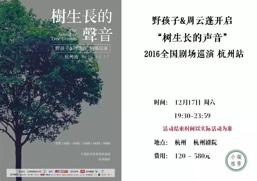 另外,小编还非常好奇,两大民谣标杆碰撞在一起,会起什么样的化学反应——他们就是野孩子乐队和诗人歌手周云蓬,“树生长的声音”,这个诗意的名字用作这一系列的主题很多年了,有理由相信,现场奉上的也会是很有诚意的音乐。