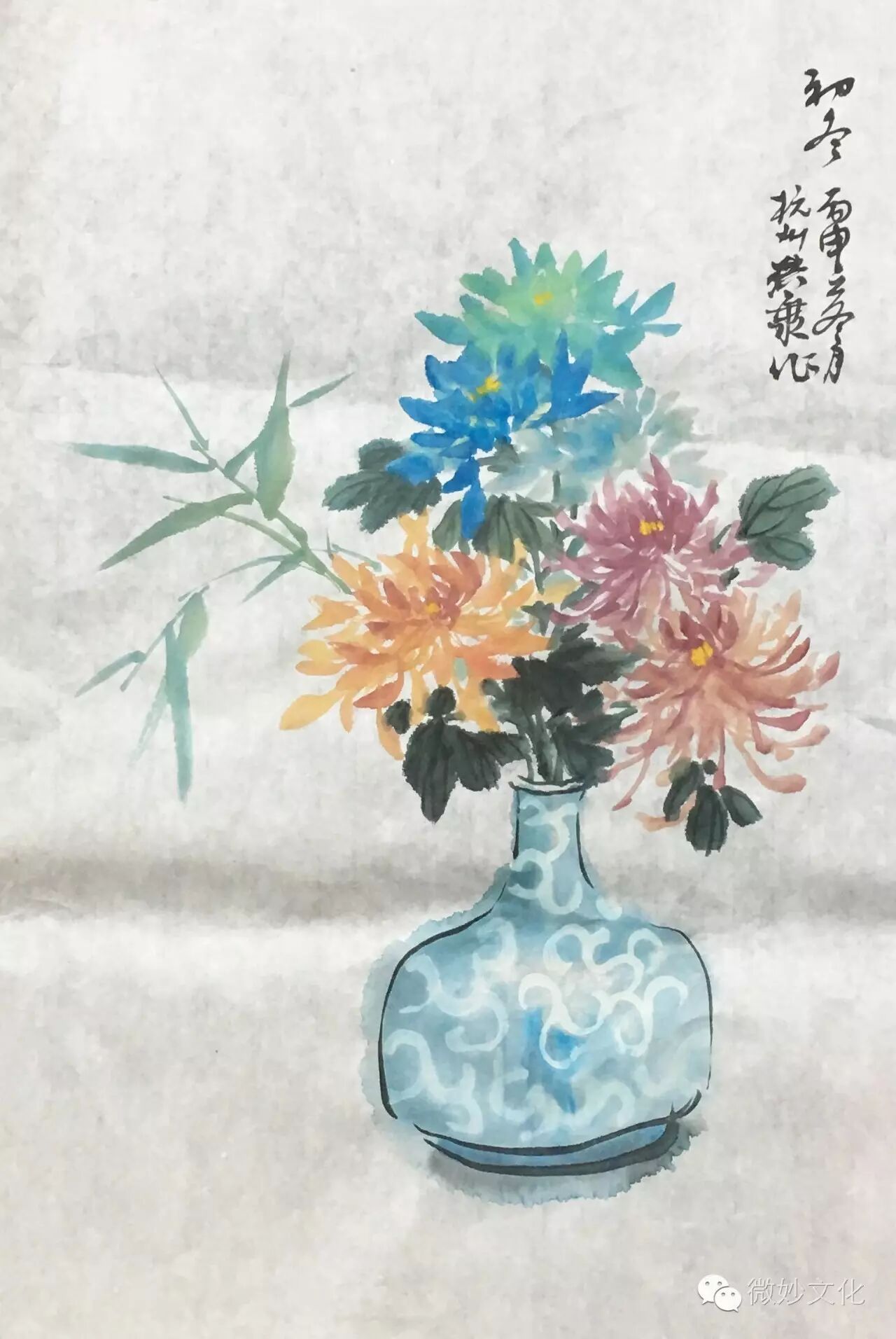 好想把画中的这瓶花拿出来摆放在桌上。