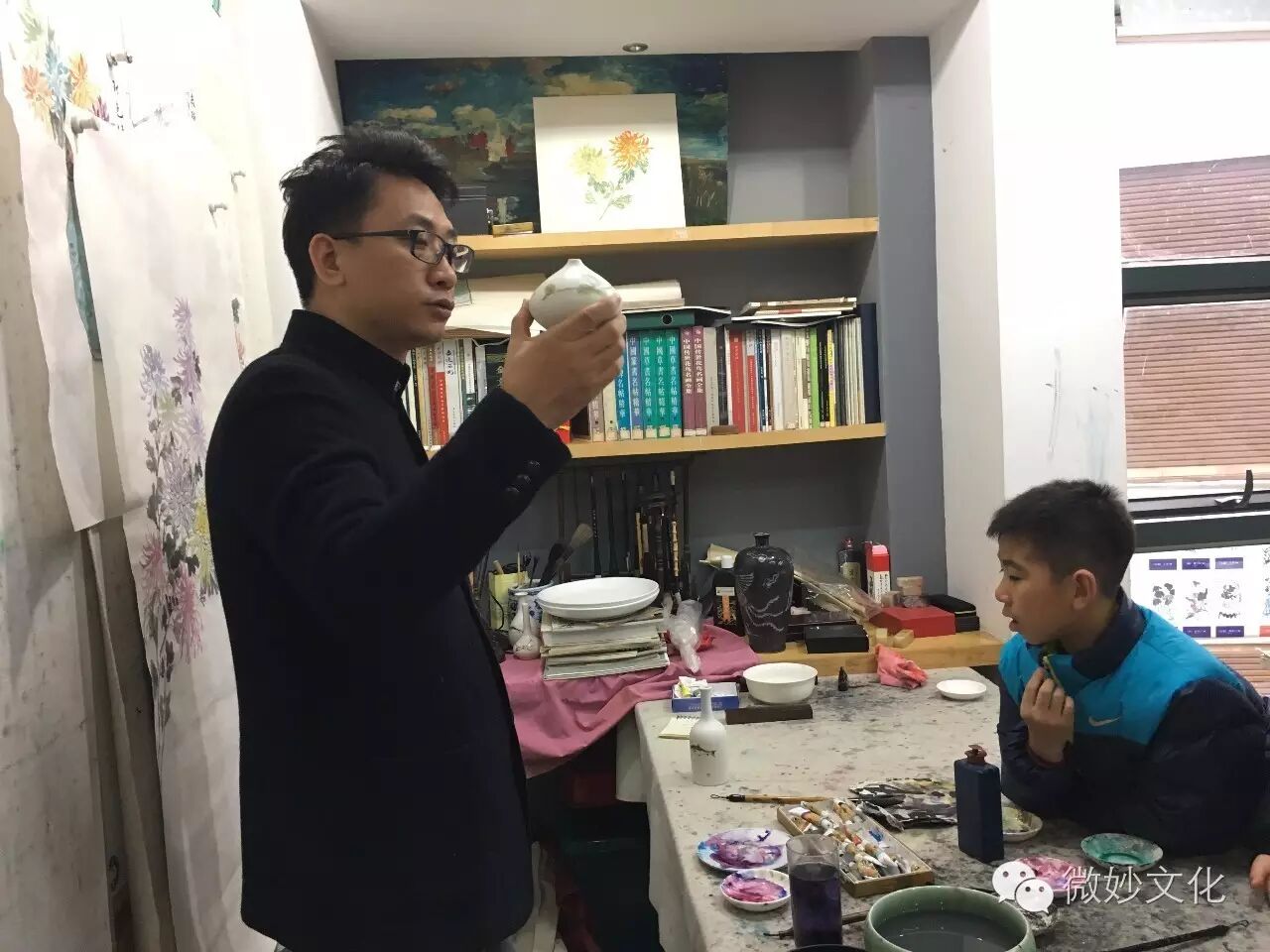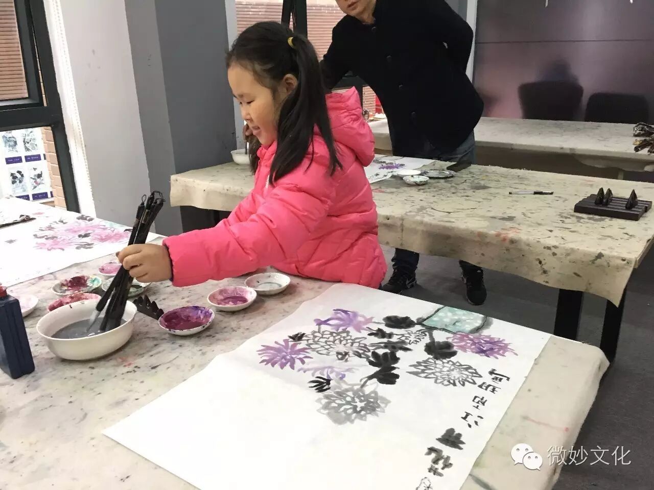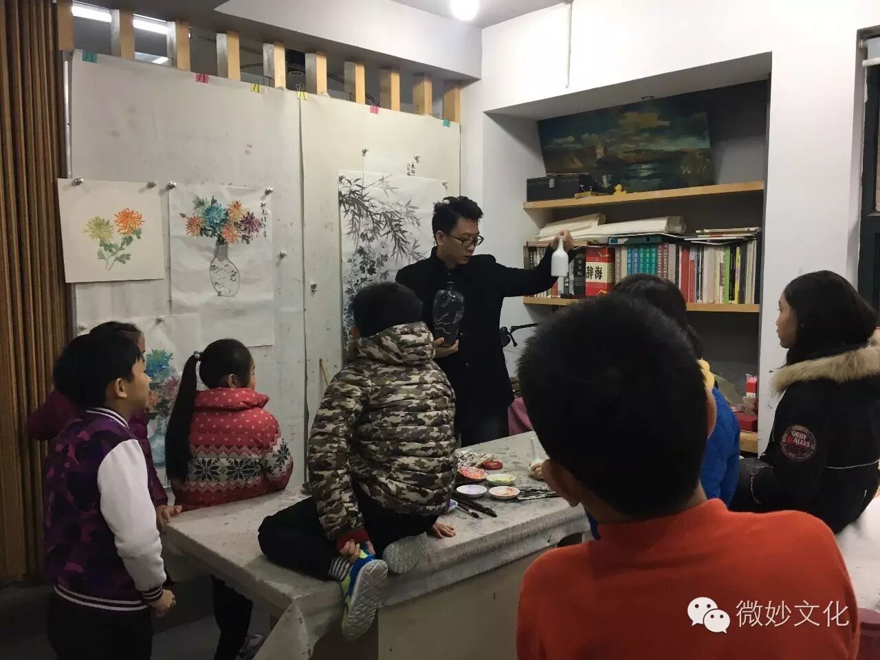 师生一起作画,好温暖的画面。