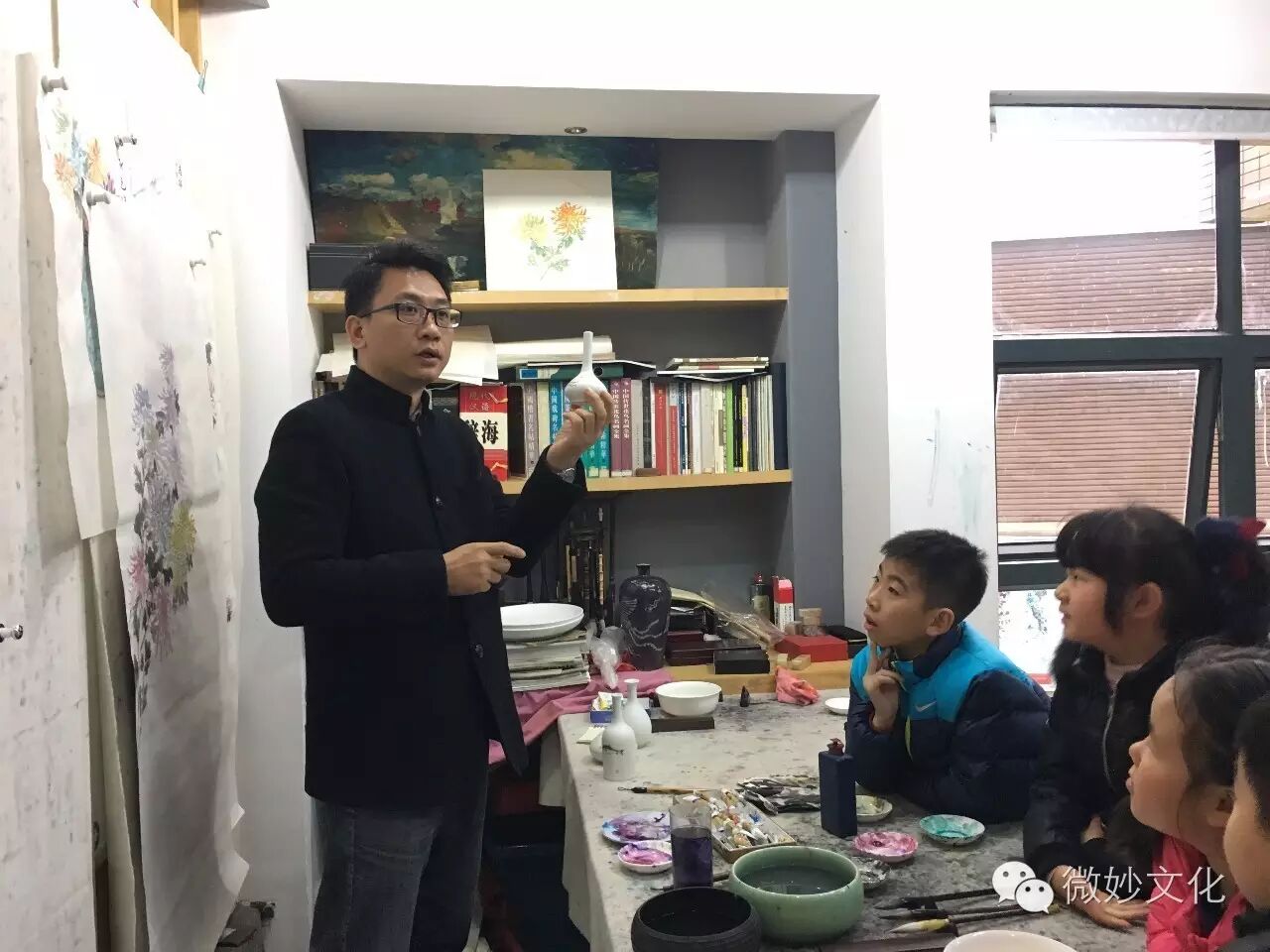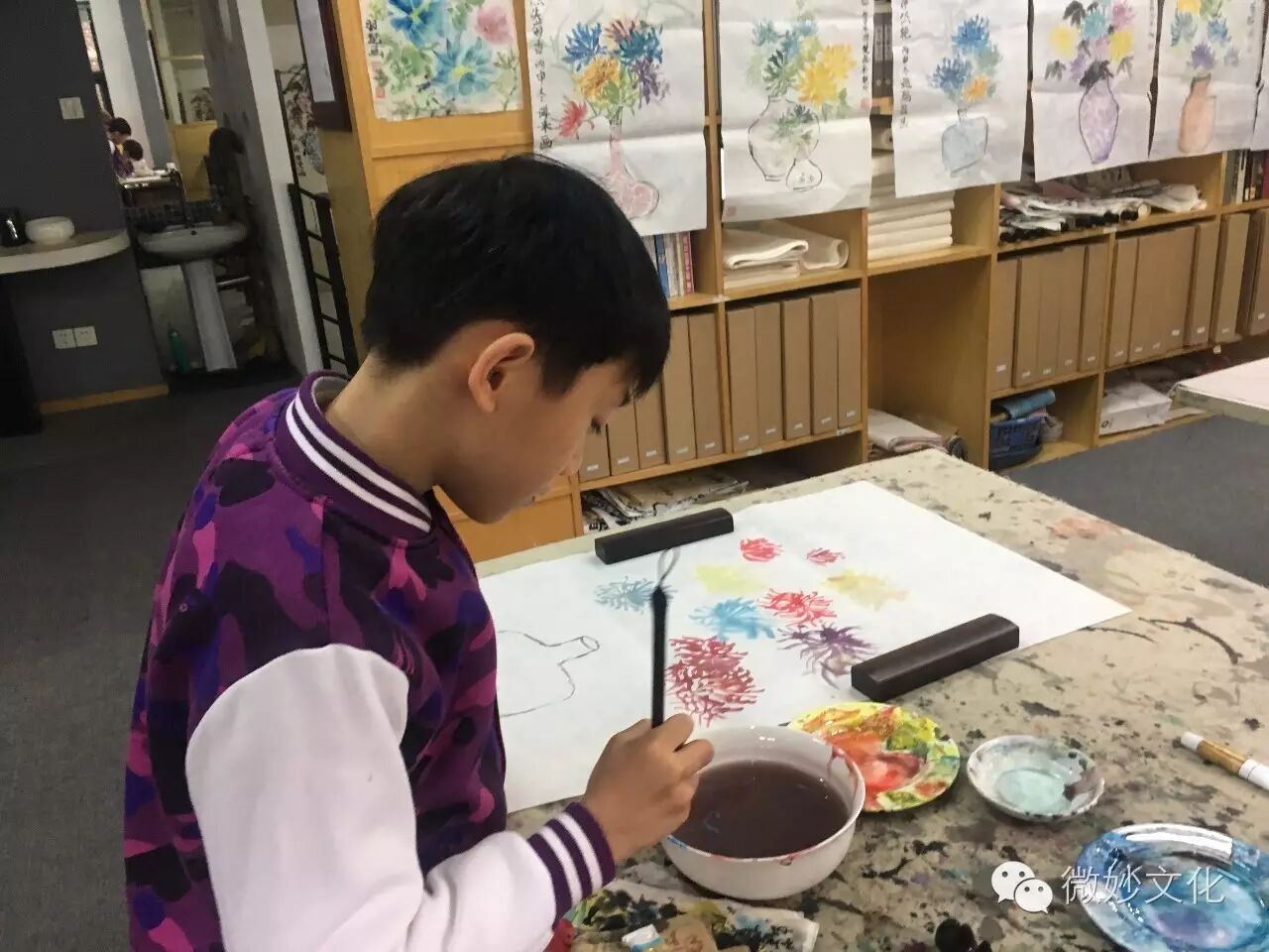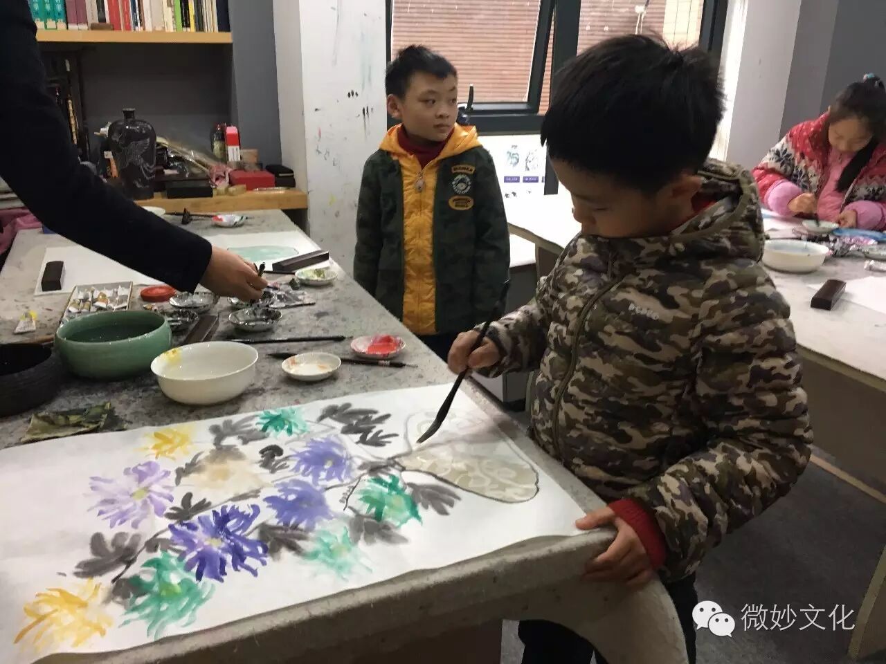 师生一起作画,好温暖的画面。