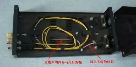 步骤 1:室外光缆光缆接入终端盒,目的是将光缆中的光纤与尾纤进行熔接,通过跳线,将其引出。