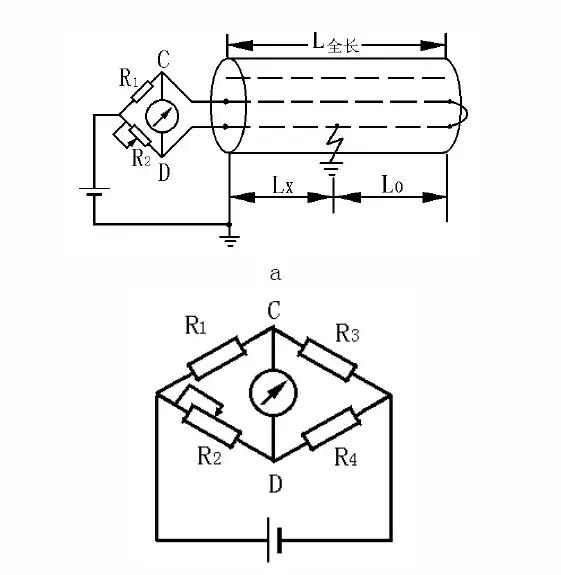 点烧断,故障电阻反而升高的现象,或是故障电阻烧得太低,呈永久短路,以至不能用放电声测法进行最后定点。电桥法的另一缺点是需要知道电缆的准确长度等原始技术资料,当一条电缆线路内是由导体材料或截面不