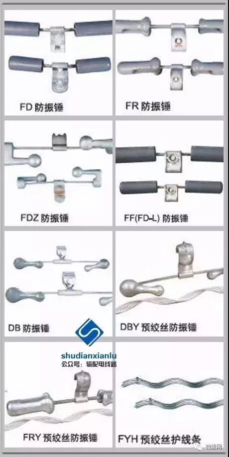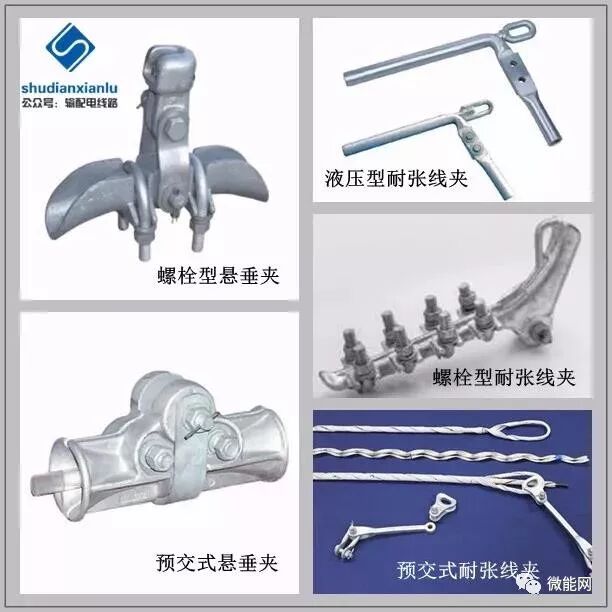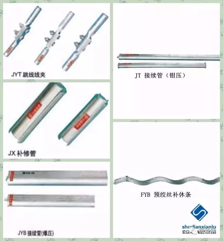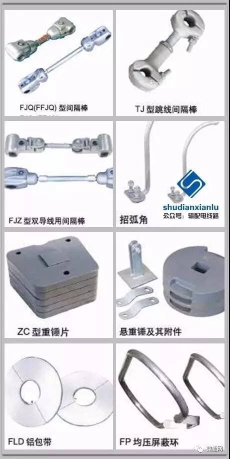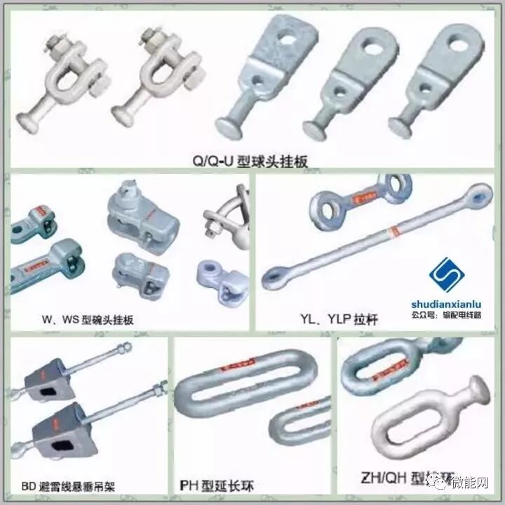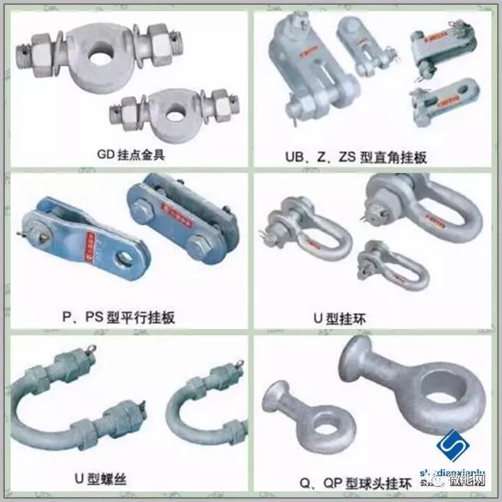 线路金具繁多,用途各异,常用的有线夹类、连接金具类、接续金具类、保护金具类等。