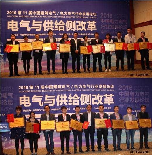 荣获2016中国电力电气十大重点工程应用品牌:石家庄市霞光电力安全科技有限公司(霞光电力)、哈尔滨龙易电气有限公司(龙易电气)、江苏宝亨新电气有限公司(宝亨新电气)、深圳市康泰电气设备有限公司(康泰电气)、郑州瑞能电气有限公司(瑞能电气)、山东力建数控设备有限公司(力建数控)、宏秀电气有限公司(宏秀电气)、希格玛电气(珠海)有限公司(希格玛电气)、珠海星玛智能电气有限公司(星玛智能电气)、万控集团有限公司(万控集团)。