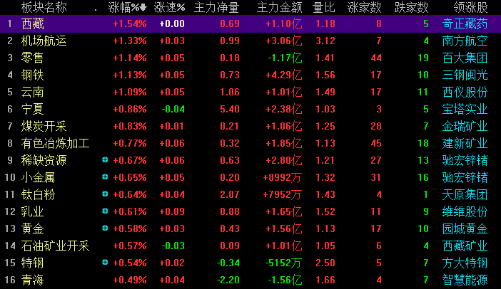 从盘面上看,机场航运、零售、钢铁等板块涨幅居前;两桶油改革、大飞机、深圳国资改革等板块跌幅居前。