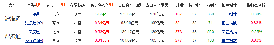 沪股通净流出5.66亿,深股通净流入9.53亿。