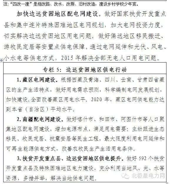 ,优先支持边疆少数民族地区和国家级贫困县。加快研究出台电力普遍服务补偿机制,支持企业在偏远地区做好电网建设和运行维护工作。
