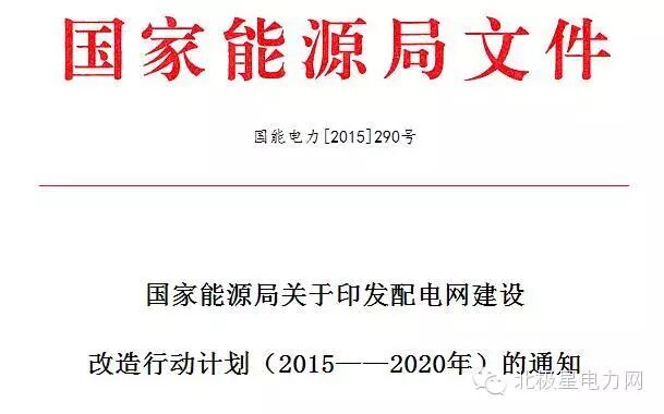 北极星电力网获悉:今日,国家能源局网站正式发布《配电网建设改造行动计划(2015~2020年)》。通过实施配电网建设改造行动计划,有效加大配电网资金投入。2015-2020年,配电网建设改造投资不低于2万亿元,其中2015年投资不低于3000亿元,“十三五”期间累计投资不低于1.7万亿元。预计到2020年,高压配电网变电容量达到21亿千伏安、线路长度达到101万公里,分别是2014年的1.5倍、1.4倍,中压公用配变容量达到11.5亿千伏安、线路长度达到404万公里,分别是2014年的1.4倍、1.3倍。到2020年,供电可靠率达到99.99%。