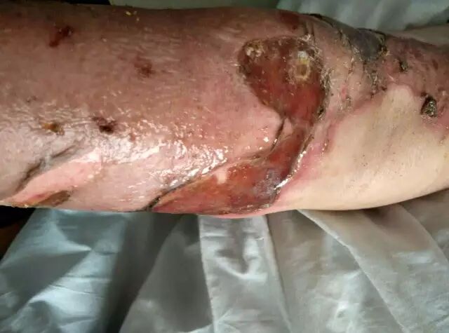 12月10,在市第五医院烧伤整形科的三楼换药室,记者见到了网传被烫伤的那个婆婆——姚三花。
