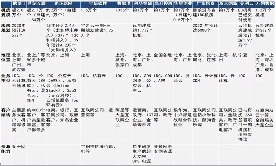 (3)IDC未来朝着集中化、规模化、大型化发展,IDC厂商可以做云增值服务、私有云、混合云等以提升单机柜价值。